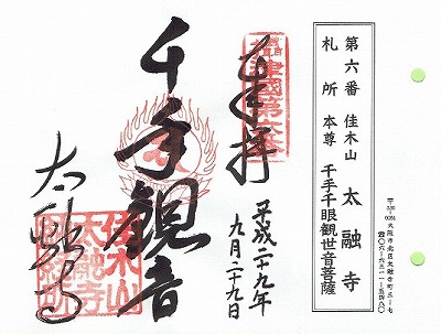 阪急電車西宮北口駅から北東へ徒歩約12分、住宅街の中にあります。阪神淡路震災後再建された本堂が見事です、納経の間に本堂の中に案内されました。