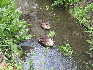 ![]() 村の神社 | ![]() 近くの小川にカモ |