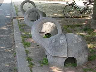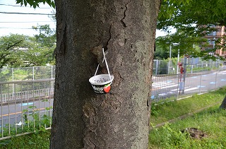 ![]() 歩道に書かれた文字 | ![]() 木に仕掛けがありました |